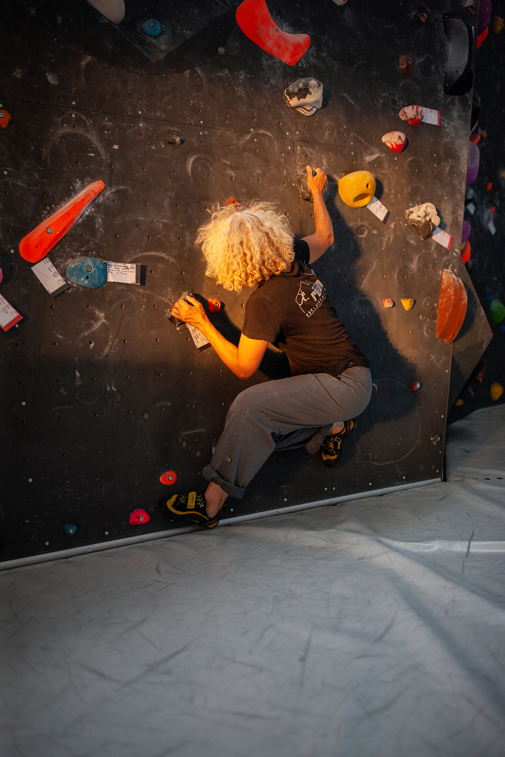 triff freunde, löse boulderprobleme, bei kaffee+selbsgebackene kuchen. sie gehören zum klettern.